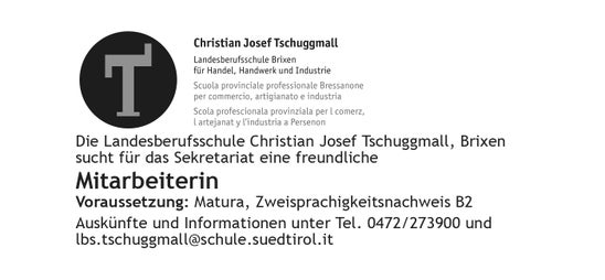 Die Landesberufsschule Christian Josef Tschuggmall, Brixen sucht für das Sekretariat eine freundliche