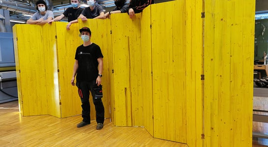 In Zusammenarbeit mit dem HdS hat die 4. BFS-HT der LBS Tschuggmall eine Paravent-Wand für die Einrichtung hergestellt.